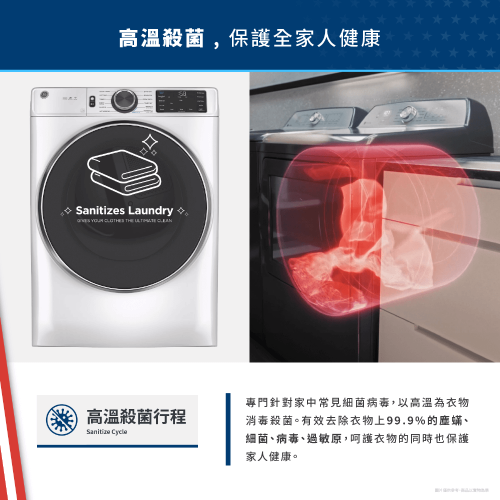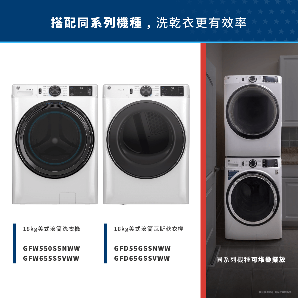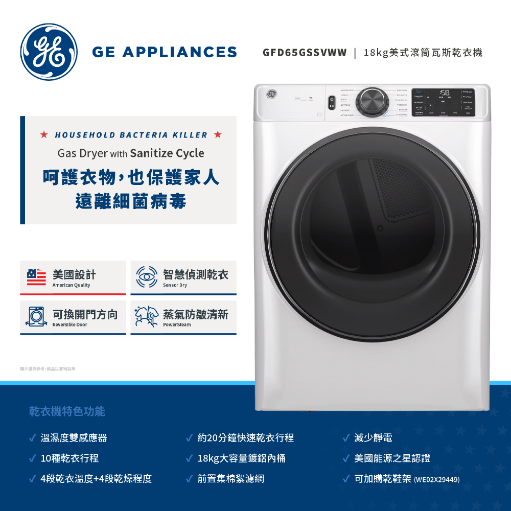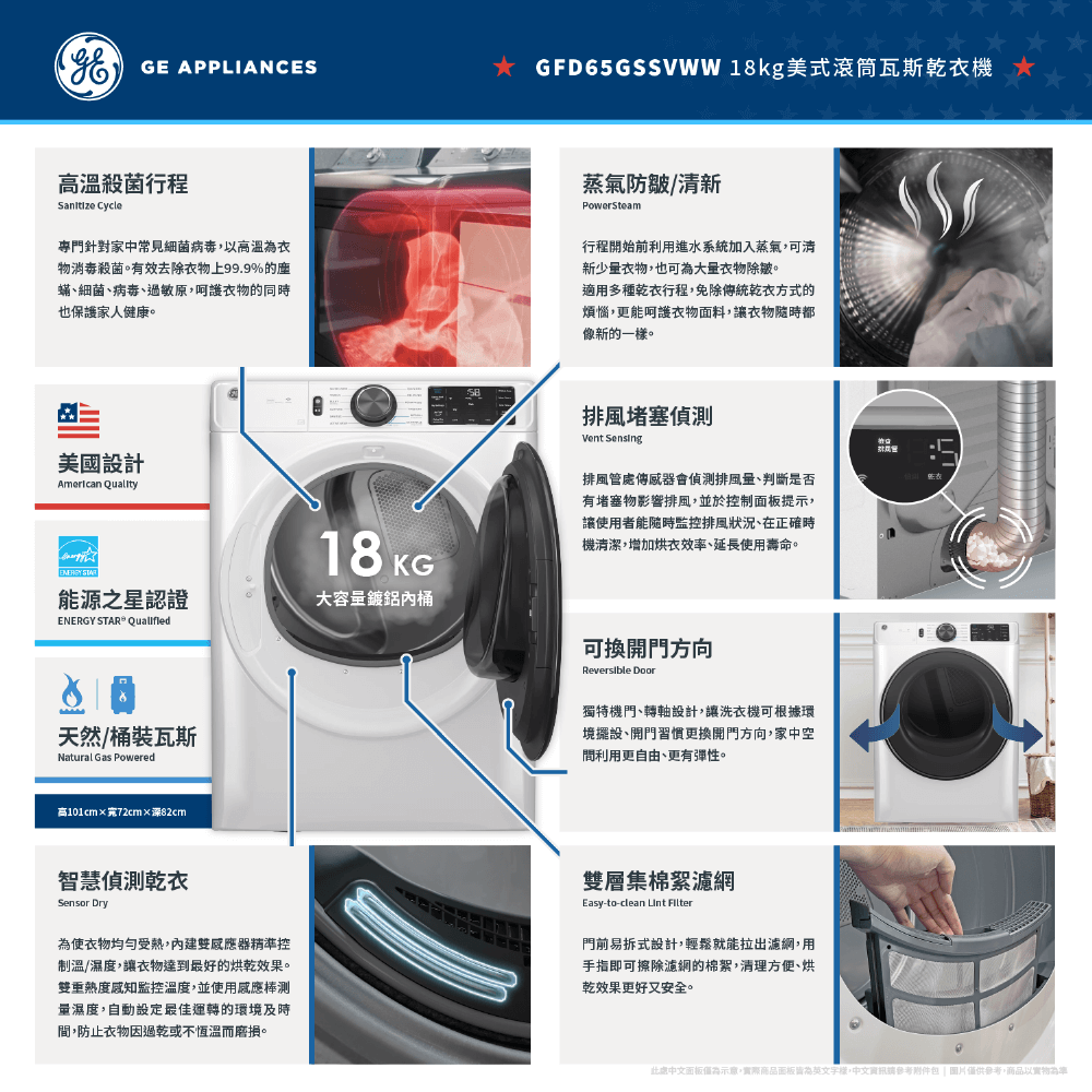GE 奇異 18KG天然瓦斯型智慧蒸氣滾筒式乾衣機GFD65GSSVWW+基本安裝