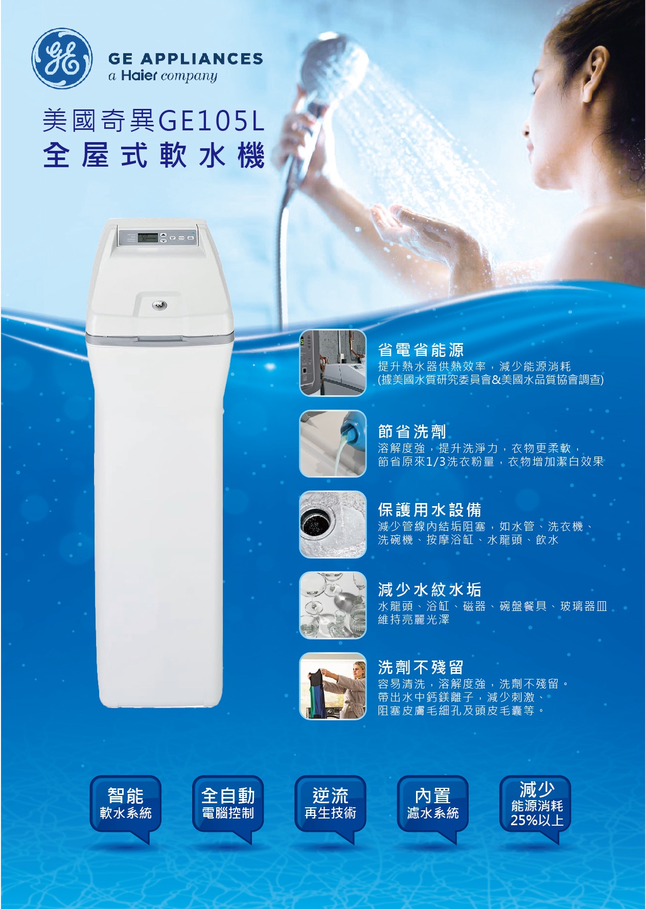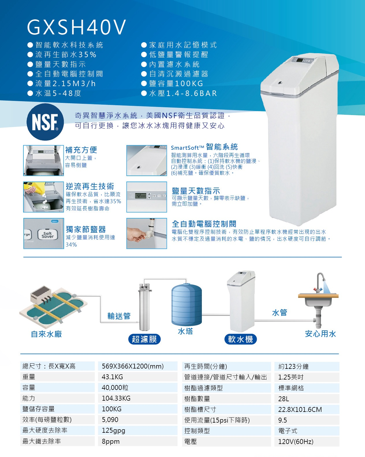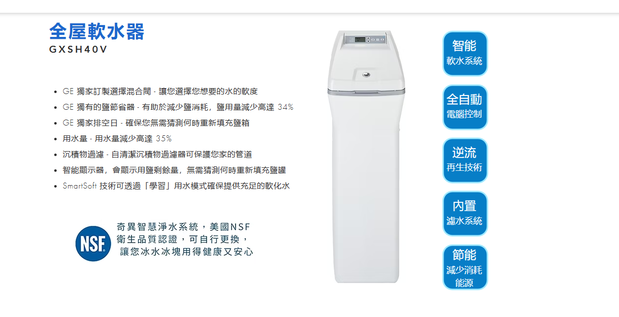 美國奇異GE全屋軟水器GXSH40V+基本安裝3米內