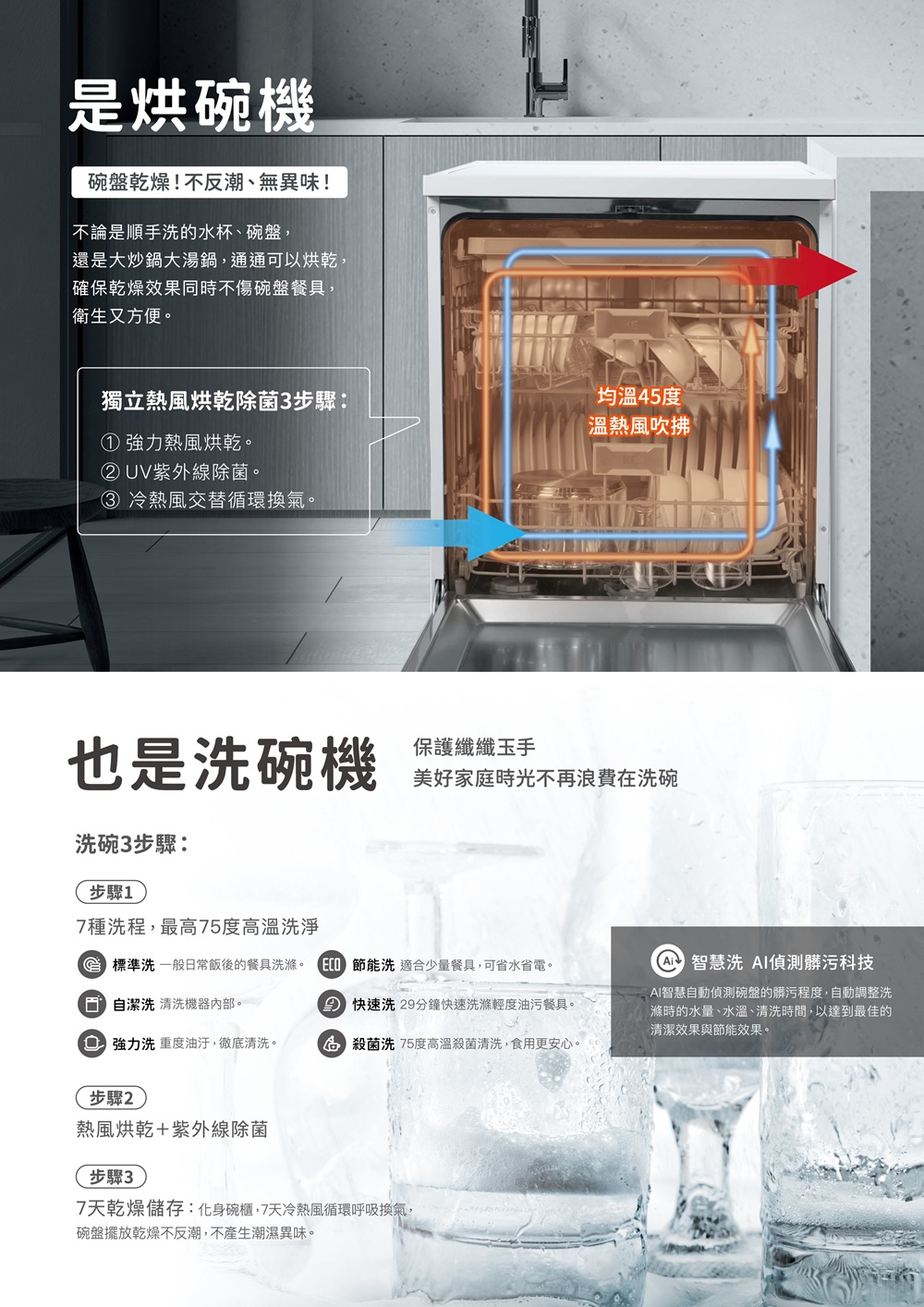 KE嘉儀 半嵌式烘碗洗碗機KDW-756Si(單獨熱風烘乾行程/Ai智能洗/110V/業界最低76.5cm)+基本安裝 拆上蓋最低77cm