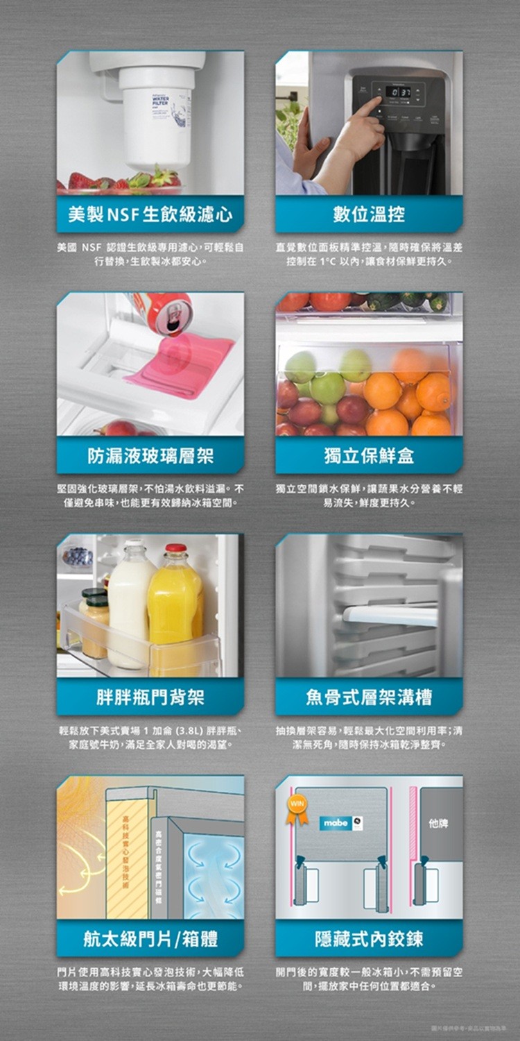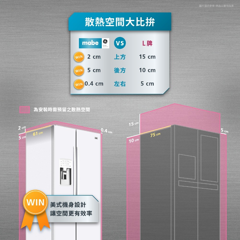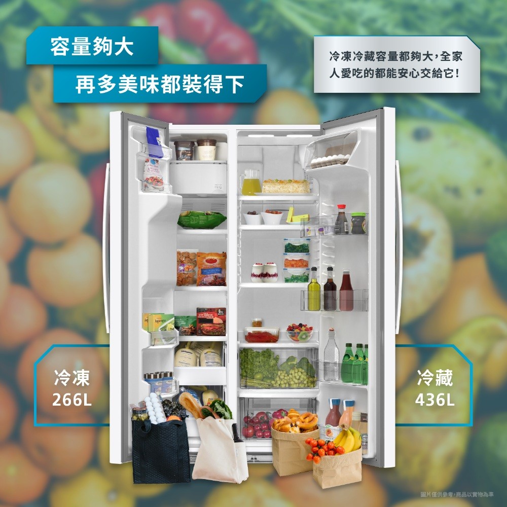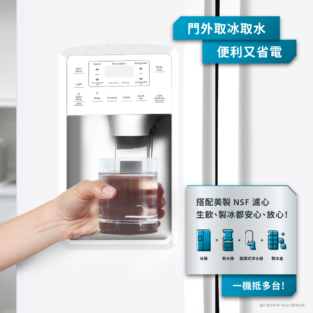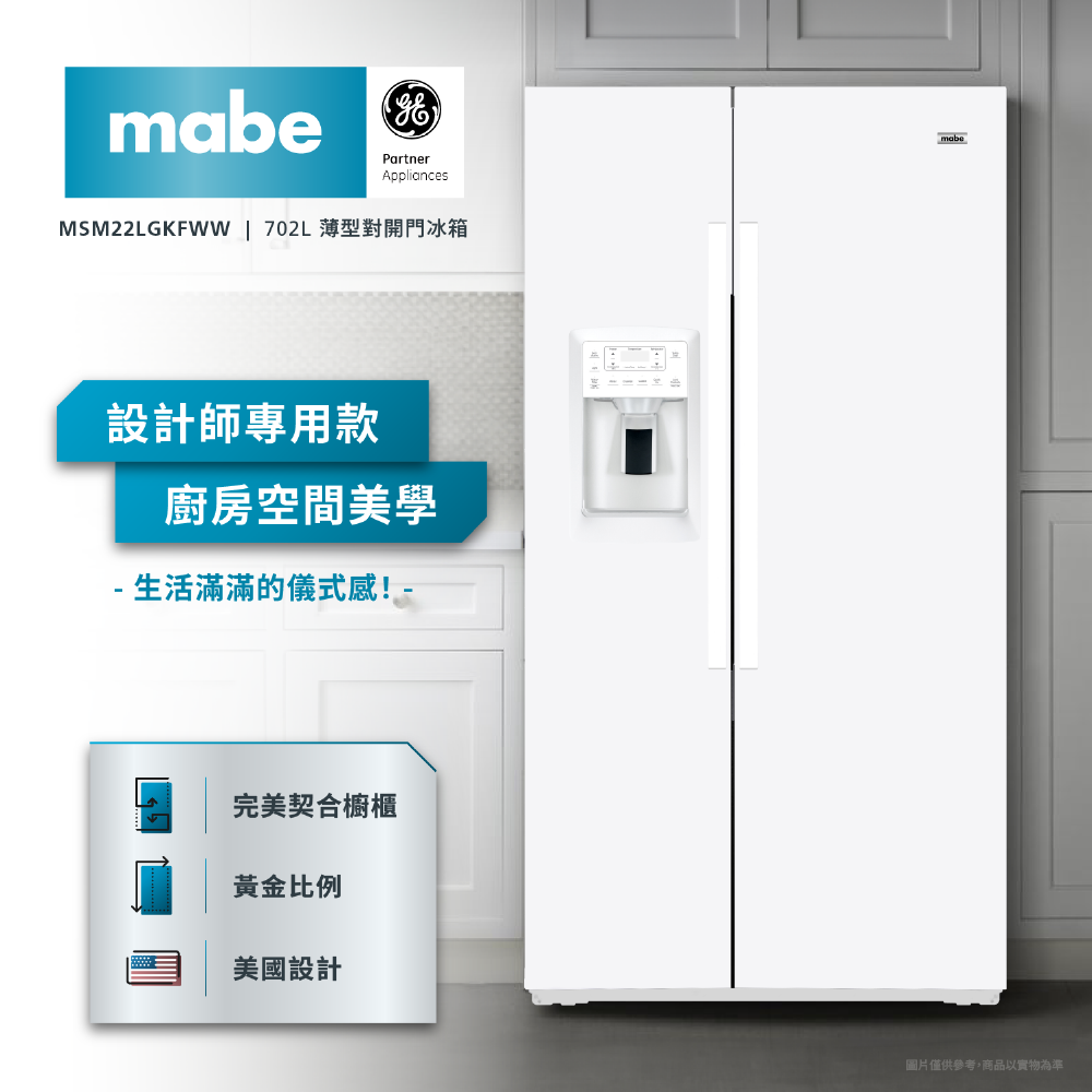 商品類型 薄型 商品顏色 純白 商品尺寸 ( 高 x 寬 x 深 ) 高1765mm x 寬910mm x 深693mm (不含門深 61cm / 含門深 69cm / 含把手深 74cm 商品容量 702L (冷凍266L/冷藏436L) 運輸重量/淨重 133.5KG / 125.5KG 適用濾心 MWF 功率/額定值 120伏; 60赫茲