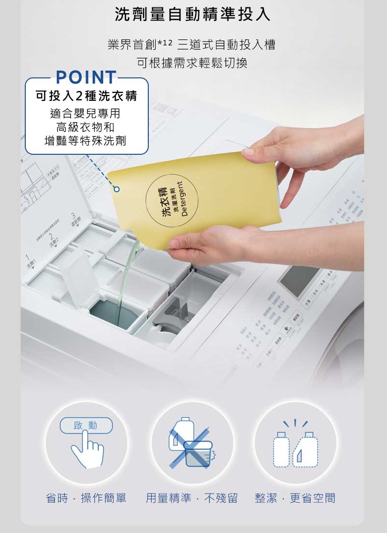 ● 洗劑量自動精準投入