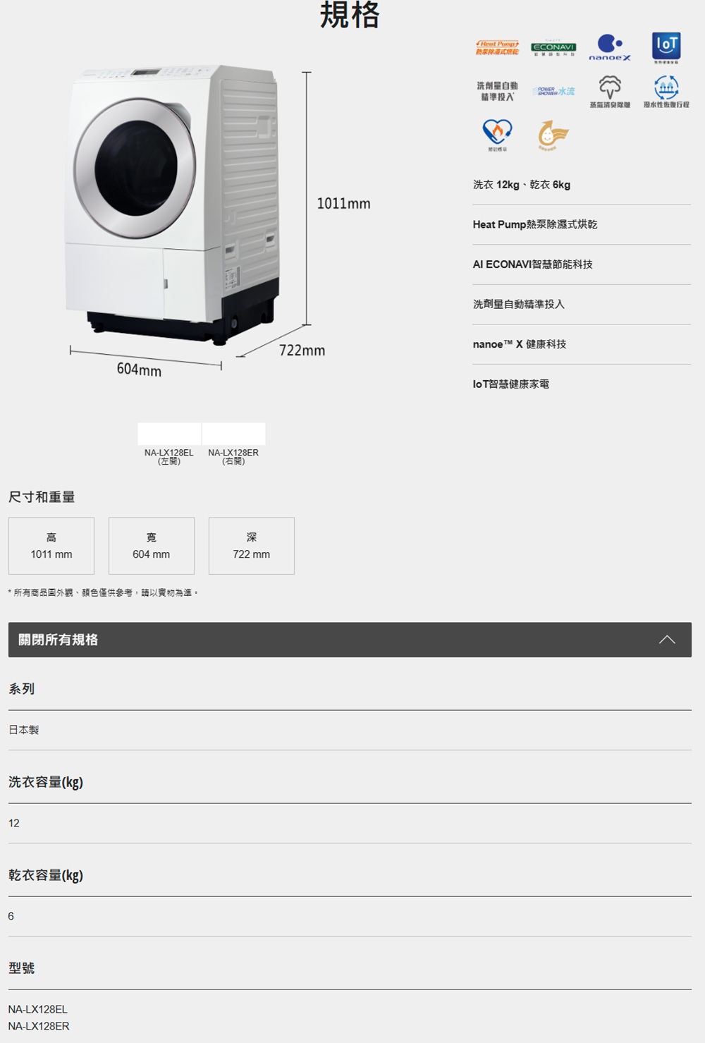● 洗衣 12kg、乾衣 6kg