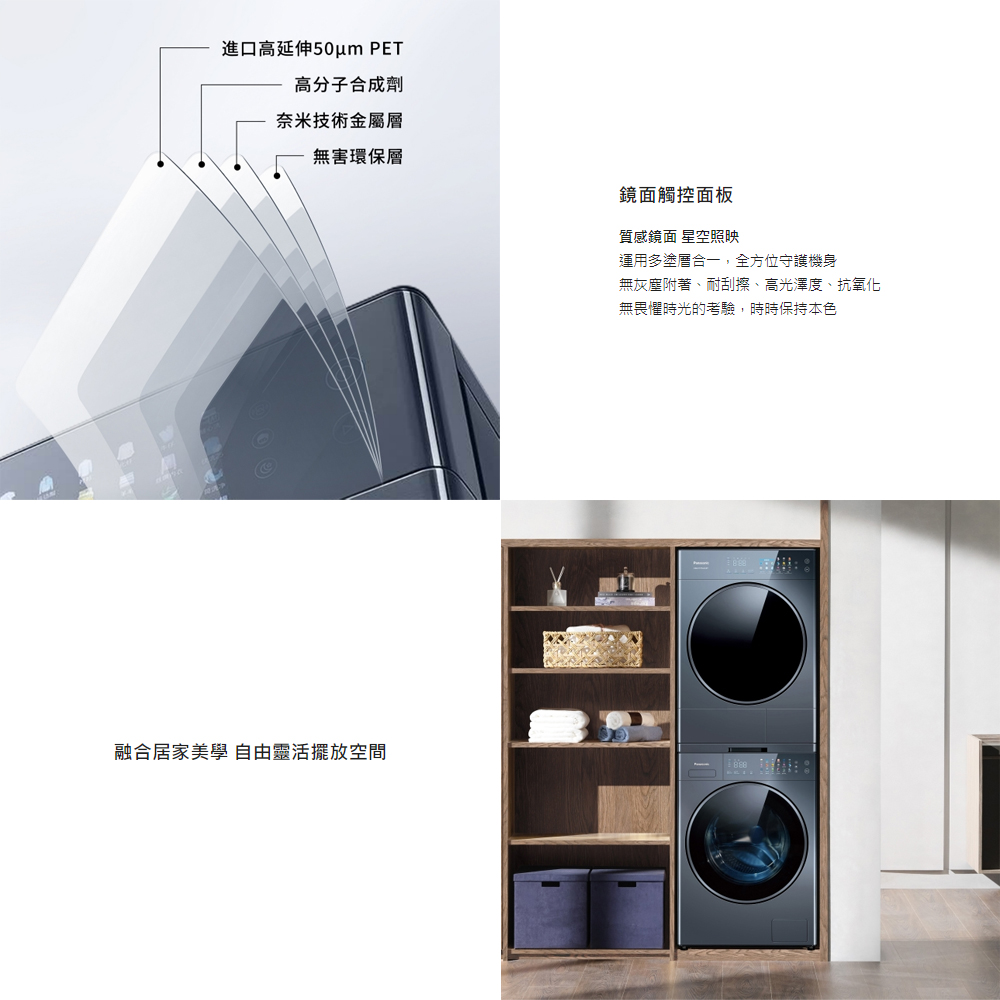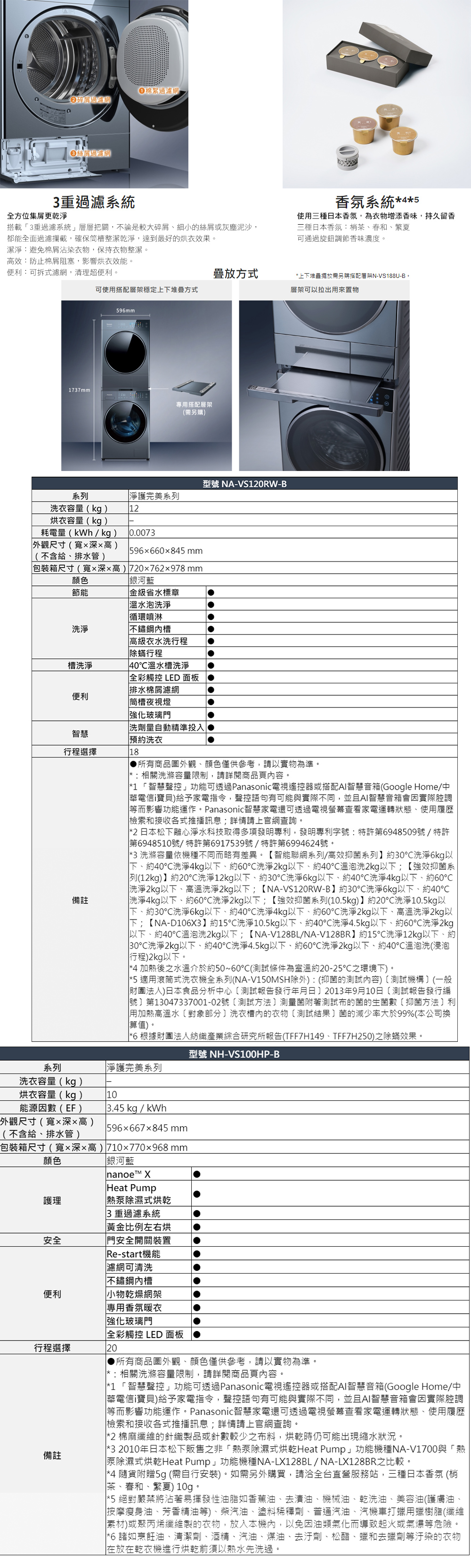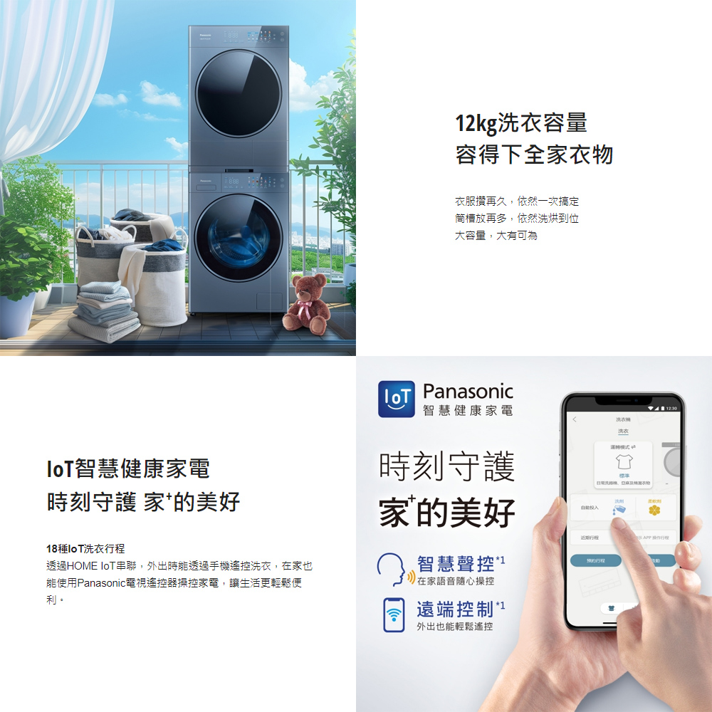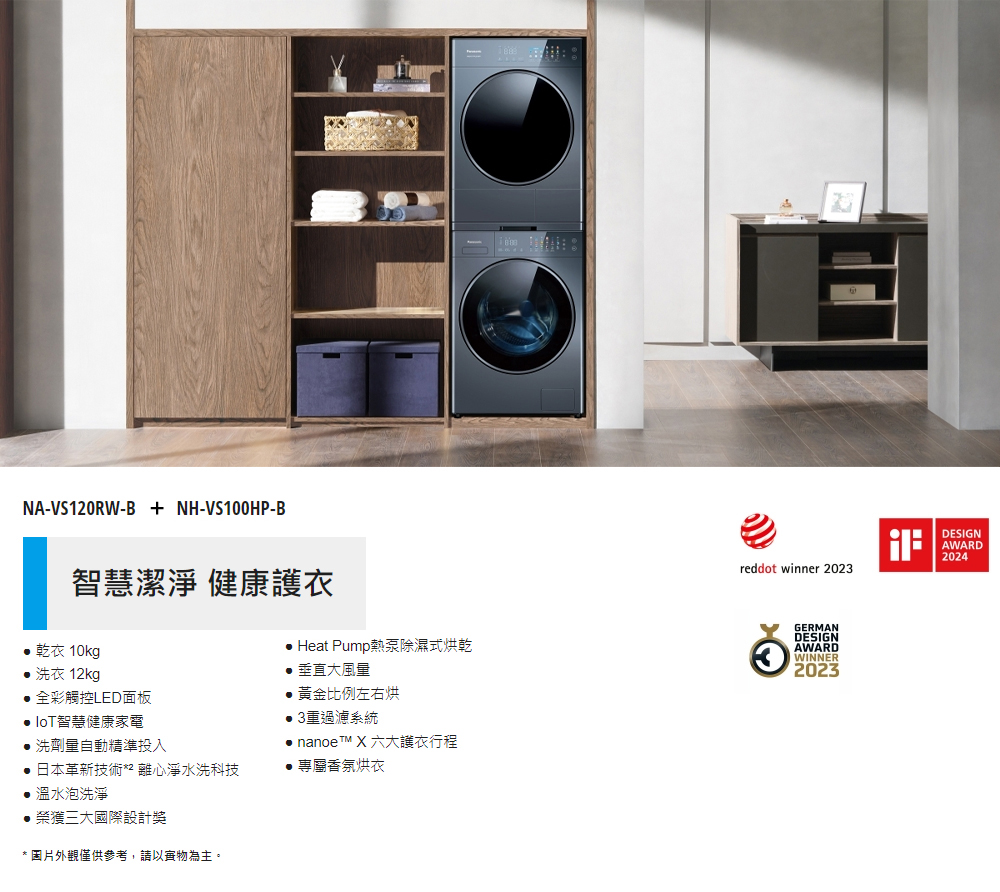 Panasonic 國際牌 可堆疊 溫水滾筒洗衣機+熱泵除濕式乾衣機(NA-VS120RW-B+NH-VS100HP-B)+基本安裝