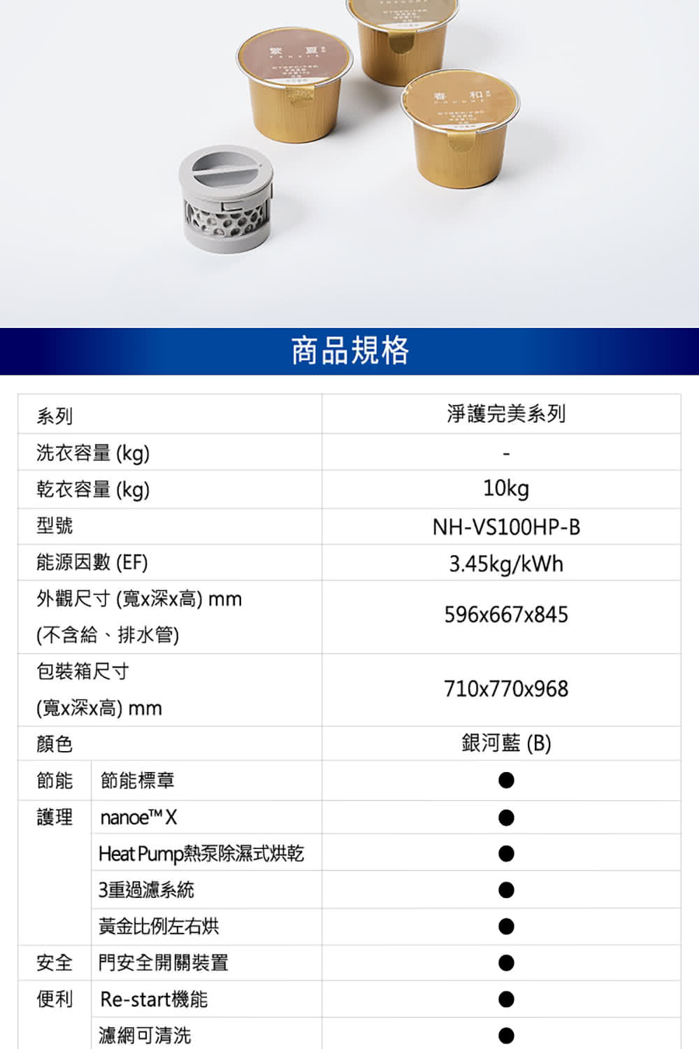 Panasonic 國際牌10公斤熱泵乾衣機-銀河藍(NH-VS100HP-B)+基本安裝