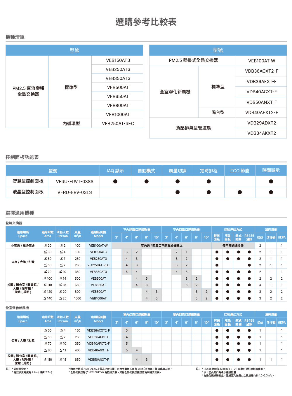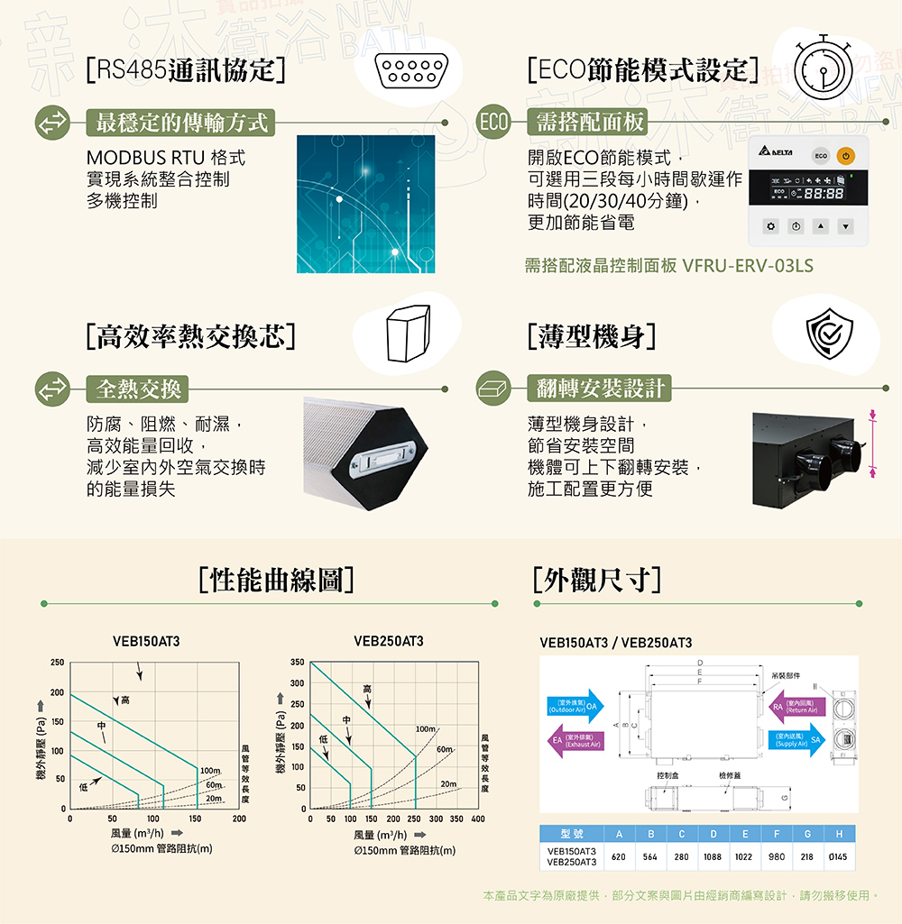 台達電子 PM2.5直流變頻全熱交換器VEB150AT3+液晶控制面板(電壓220V)無安裝