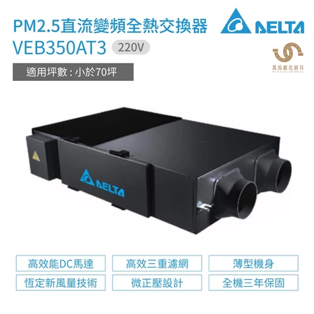 台達電子 PM2.5直流變頻全熱交換器VEB350AT3+液晶控制面板(電壓220V)無安裝