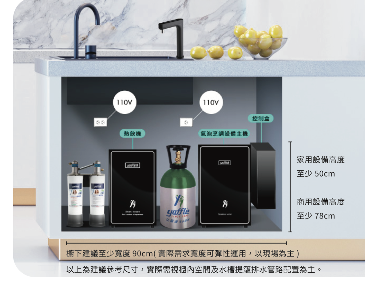 Yaffle 亞爾浦 櫥下型家用微礦氣泡水機 YS-1301 四溫觸控大全配組合+基本安裝