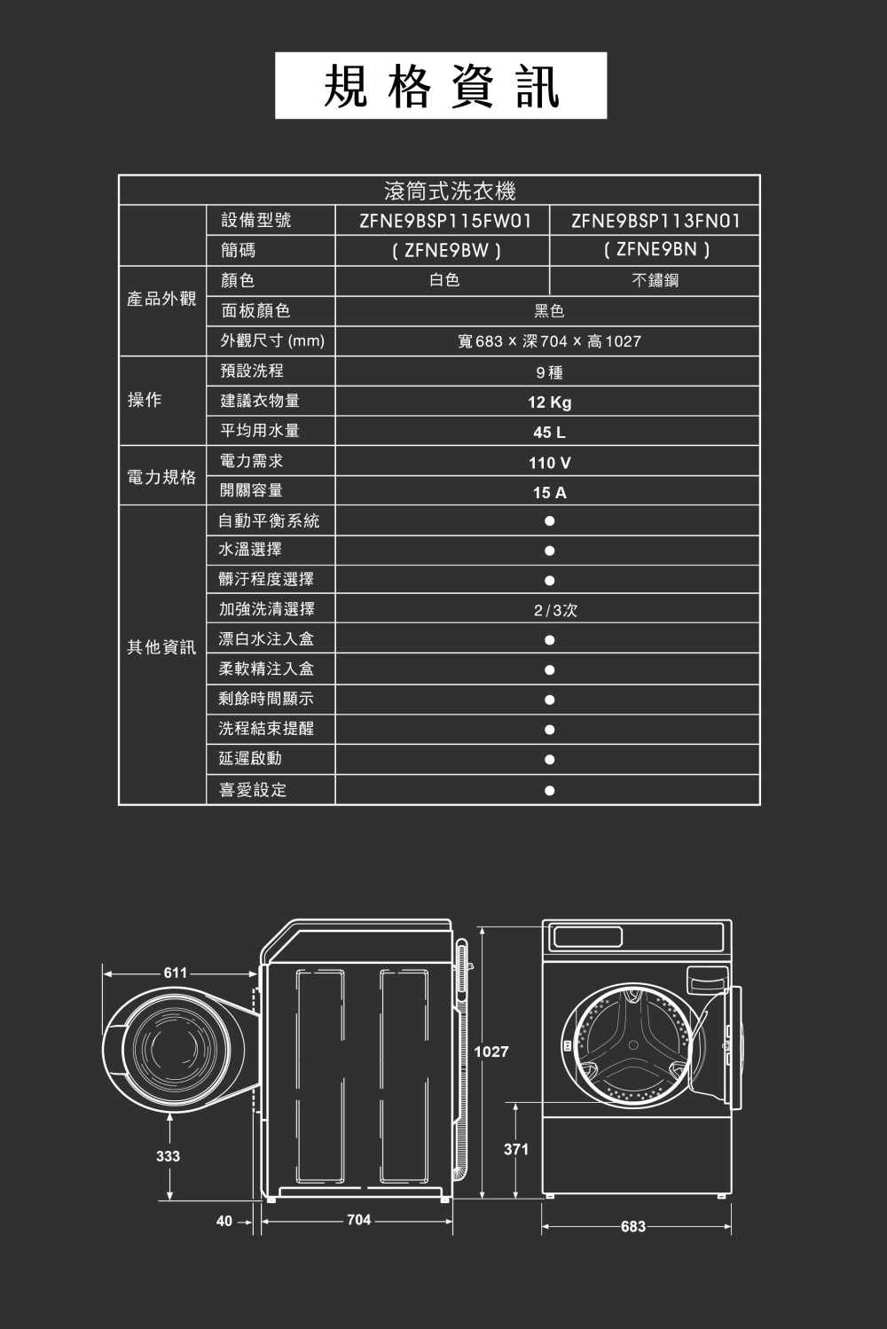- 不鏽鋼外殼、內外槽